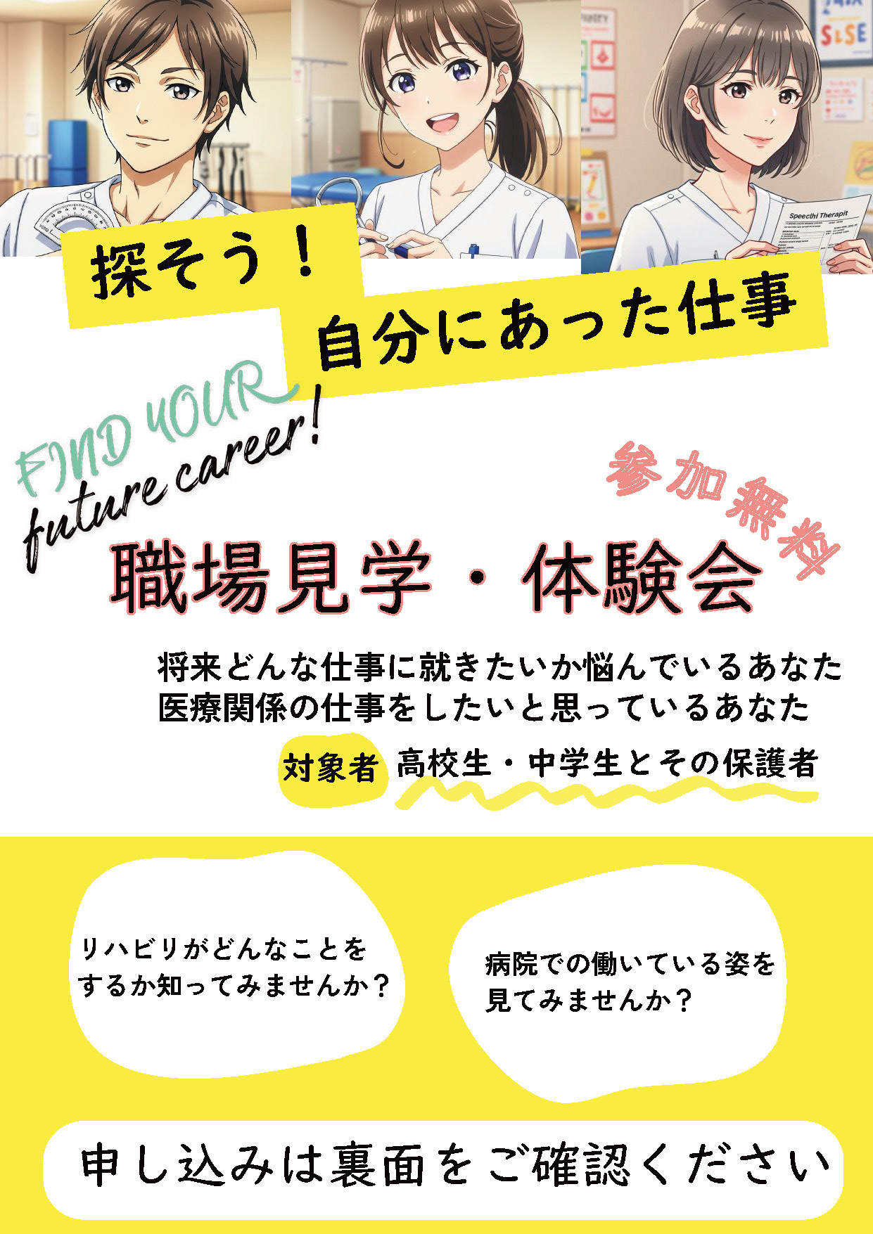 リハビリテーション職場見学・体験会のお知らせ【高校生・中学生対象】