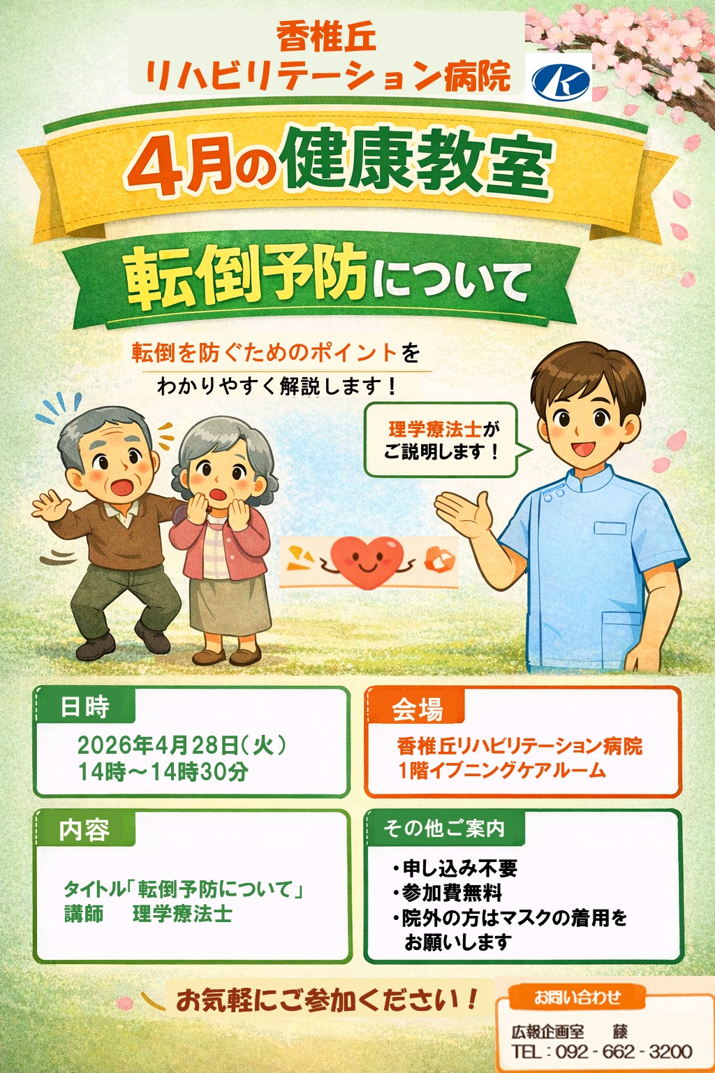 4月28日(火)は『転倒予防について』です。ぜひご参加ください。